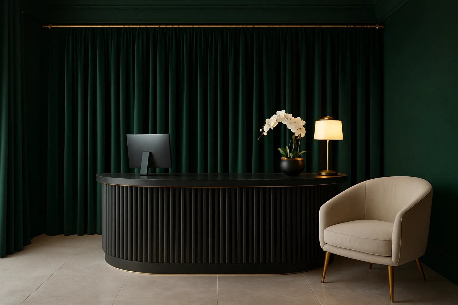 الألوان: اختر الألوان التي تتماشى مع الجدران والأثاث. الألوان الهادئة مثل الأبيض والرمادي والبيج تناسب الريسبشن العصري.