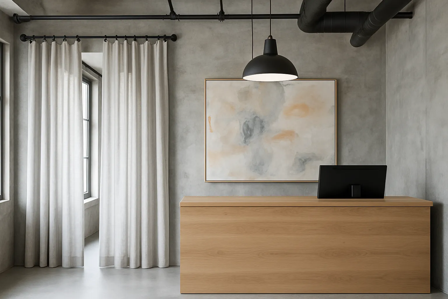 خيار عصري يناسب الريسِبشنات الصغيرة أو المكاتب المنزلية. تتميز بخطوطها البسيطة وسهولة التحكم بها، وغالبًا ما تأتي بألوان محايدة مثل الأبيض والرمادي والبيج.الستائر البنائية (Panel Curtains):