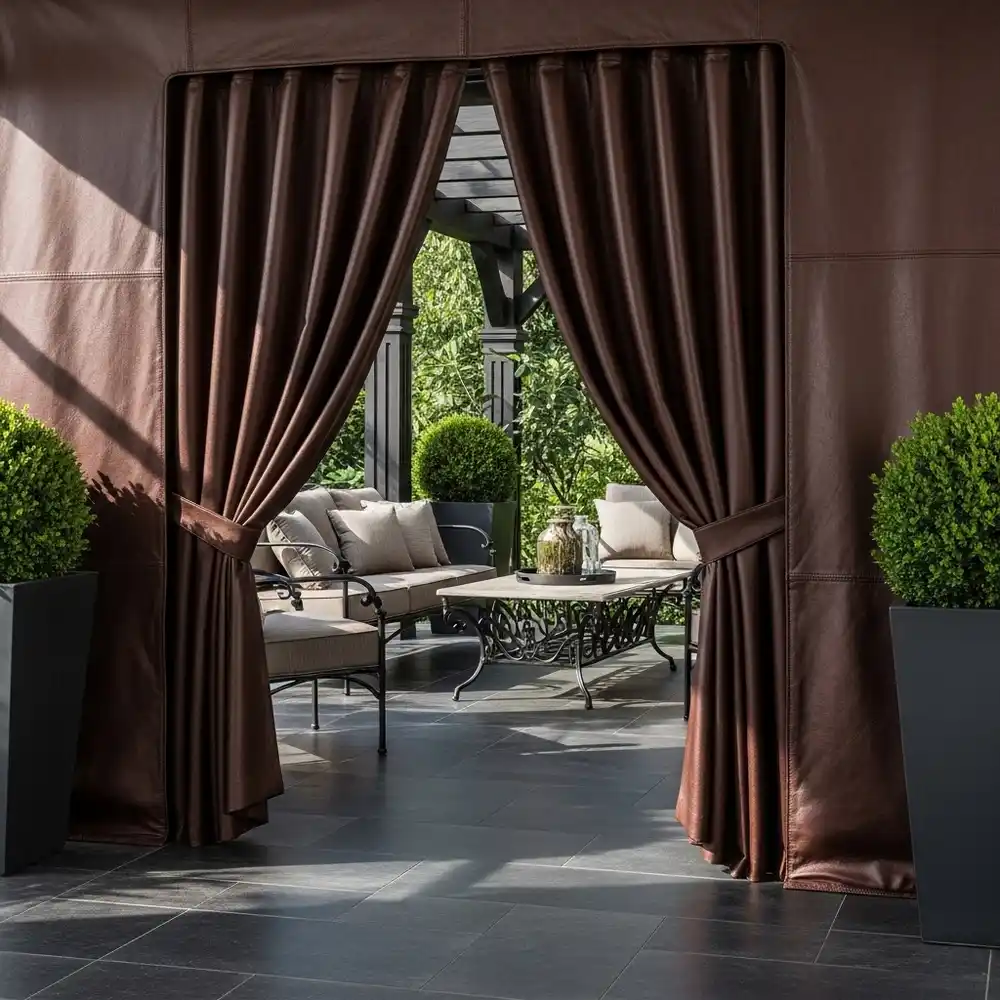 تغزو ستائر البلكونات الجلد أسواق الديكور بمظهر فاخر وعملي في نفس الوقت، فهذه الستائر توفر حماية كبيرة للبلكونة ضد عوامل الطقس وتمتاز بقدرتها على عزل الحرارة والغبار وتسهيل التنظيف عبر قطعة قماش مبللة فقط. تتوفر غالبًا بألوان داكنة ومحايدة تضيف لمسة فخمة وشعورًا بالدفء خصوصًا في الشتاء. كما أنها مثالية للبلكونات المفتوحة أو الشرفات التي تحتاج متانة في الاستخدام لفترات طويلة دون تلف أو تغيير في الشكل.