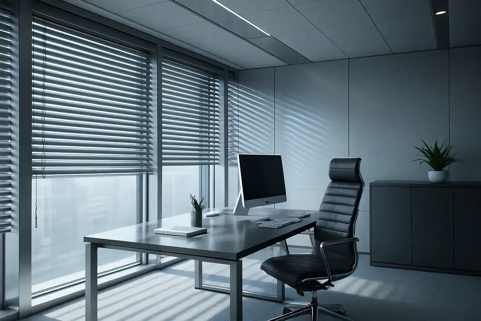 Modern motorized options: Facilitate effortless control over light and privacy, an asset for large meeting spaces or tech-driven workplaces.